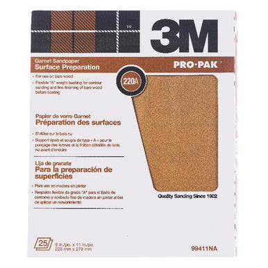 3M Pro-Pak 11 in. L x 9 in. W 220 Grit Garnet Sandpaper 25 pk