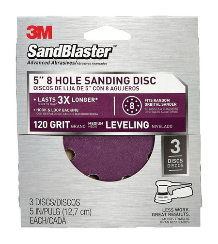 3M SandBlaster 5 in. Ceramic Blend Hook and Loop Sanding Disc 120 Grit Medium 3 pk