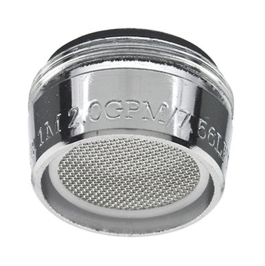 Brand Name: ACE | Exterior Thread Size: 15/16 in. | Interior Thread Size: 15/16 in. | Packaging Type: Blister Pack Contemporary styled, chrome slotless aerators are attractive additions to any faucet. They contain non corroding plastic internal diffusing components with stainless steel screens to provide extra life. Faucet aerators increase spray velocity and reduce splash. | Reduces Waterflow to 2.0 GPM | Chrome finish