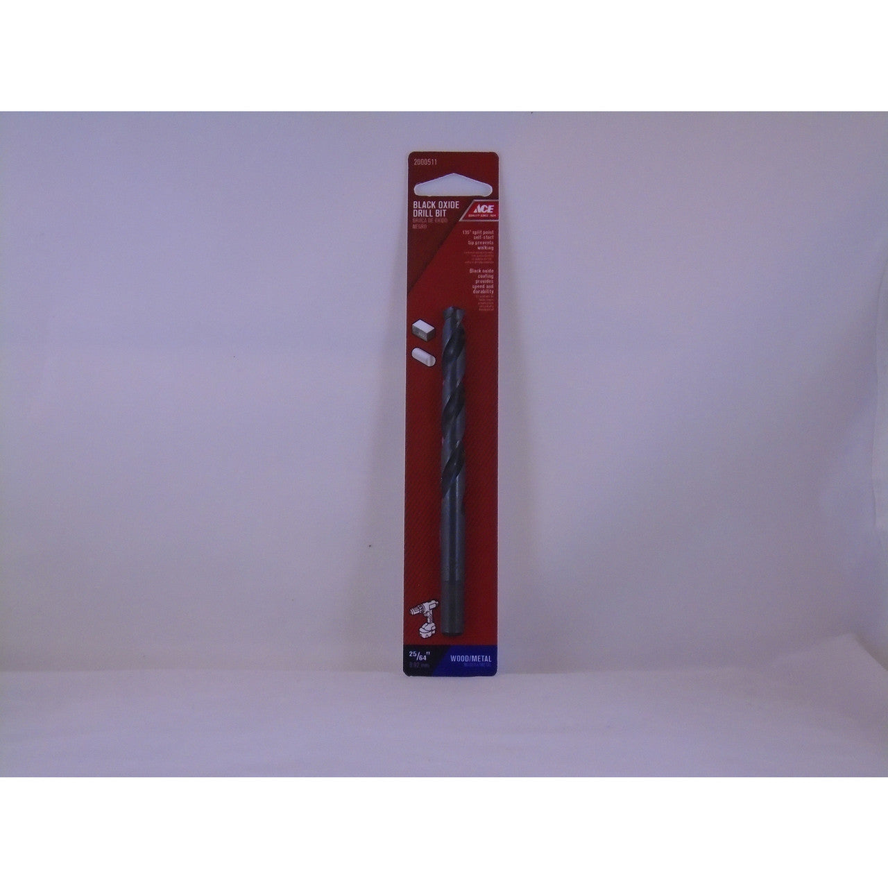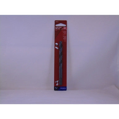Brand Name: ACE | Finish: Black Oxide | Material: High Speed Steel | Number in Package: 1 pc. | Overall Length: 5-1/8 in. | Packaging Type: Carded | Shank Diameter: 3/8 in. | Shank Type: Round Shank | Usage: Wood and Metal | Drill Size: 25/64 in. Heavy Duty Black Oxide Coated High Speed Steel Job | Bit is constructed of M-2 high speed steel | Black oxide coating resists corrosion | 135 degree split point ensures a true start and eliminates bit walking