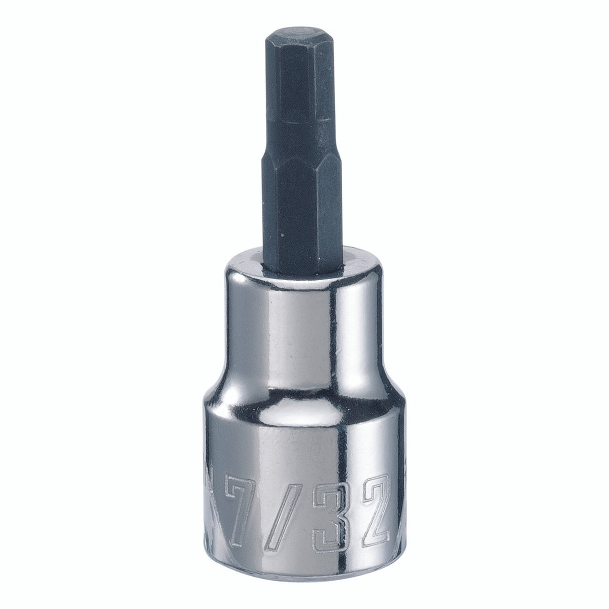 Brand Name: cm | Drive Size: 3/8 in. drive | Material: Alloy Steel | Metric or SAE: SAE | Number in Package: 1 pc. | Number of Points: 6 Point | Packaging Type: Carded | Socket Size: 7/32 in. | Style: Standard | Impact Rated: No Undo the hex with the cm 7/32 inch hex bit socket. The cm 7/32 inch hex bit socket brings ratcheting power to your hex equipment. Just enough torque to loosen fasteners but not so much that you're damaging delicate hardware. cm's 7/32 inch hex bit socket is guaranteed forever. Constructed from drop-forged steel, this socket can stand up to tough tasks. | 3/8 in. drive size | 7/32 in. socket | Made of alloy steel