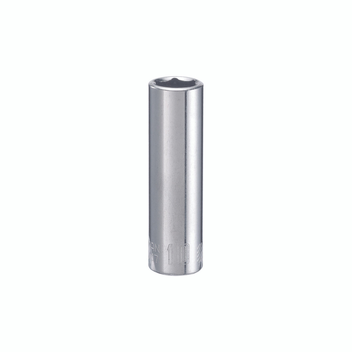 Brand Name: cm | Drive Size: 1/4 in. drive | Material: Alloy Steel | Metric or SAE: Metric | Number in Package: 1 pc. | Number of Points: 6 Point | Packaging Type: Carded | Socket Size: 10 mm | Style: Deep | Impact Rated: No Laser-etched size marking makes it easy to locate the right socket for the job. Great for working in low-lit or greasy environments. Permanent marking resists chipping, fading and corroding. Headlock grip gives more contact on the flats of the fastener for more turning force. | 6 Points of Contacts | 1/4 in. Drive | 10mm socket size