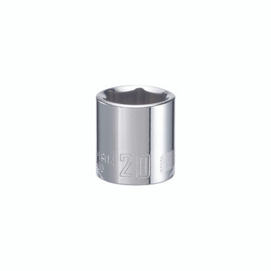 Brand Name: cm | Drive Size: 3/8 in. drive | Material: Alloy Steel | Metric or SAE: Metric | Number in Package: 1 pc. | Number of Points: 6 Point | Packaging Type: Carded | Socket Size: 20 mm | Style: Standard | Impact Rated: No Laser-etched size marking makes it easy to locate the right socket for the job. Great for working in low-lit or greasy environments. Permanent marking resists chipping, fading and corroding. Headlock grip gives more contact on the flats of the fastener for more turning force. | 0.19 lbs. weight | 3/8 in. size | Nickel plated finish | 6 contact points | 20 mm socket size