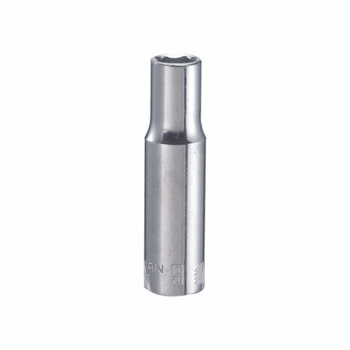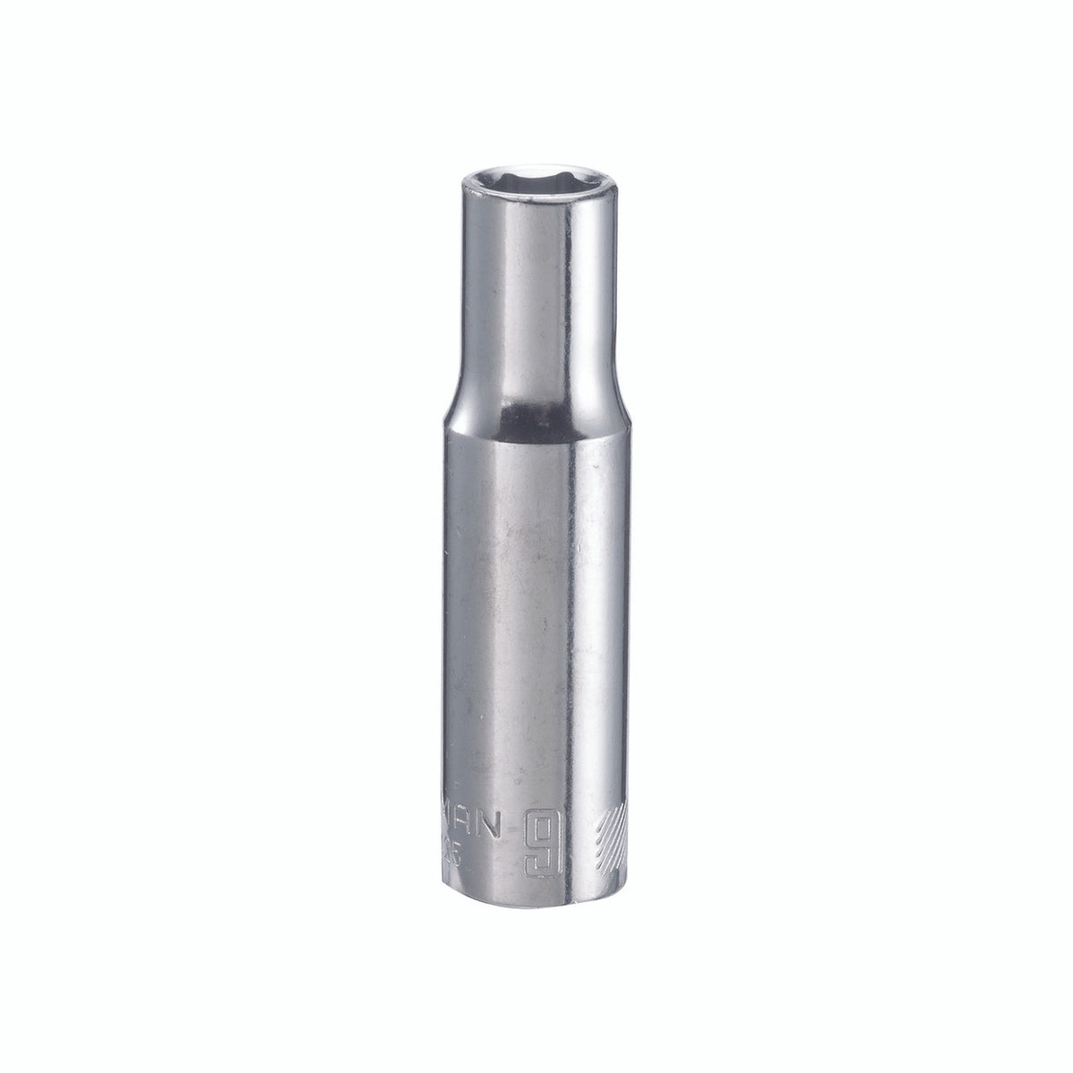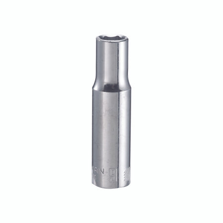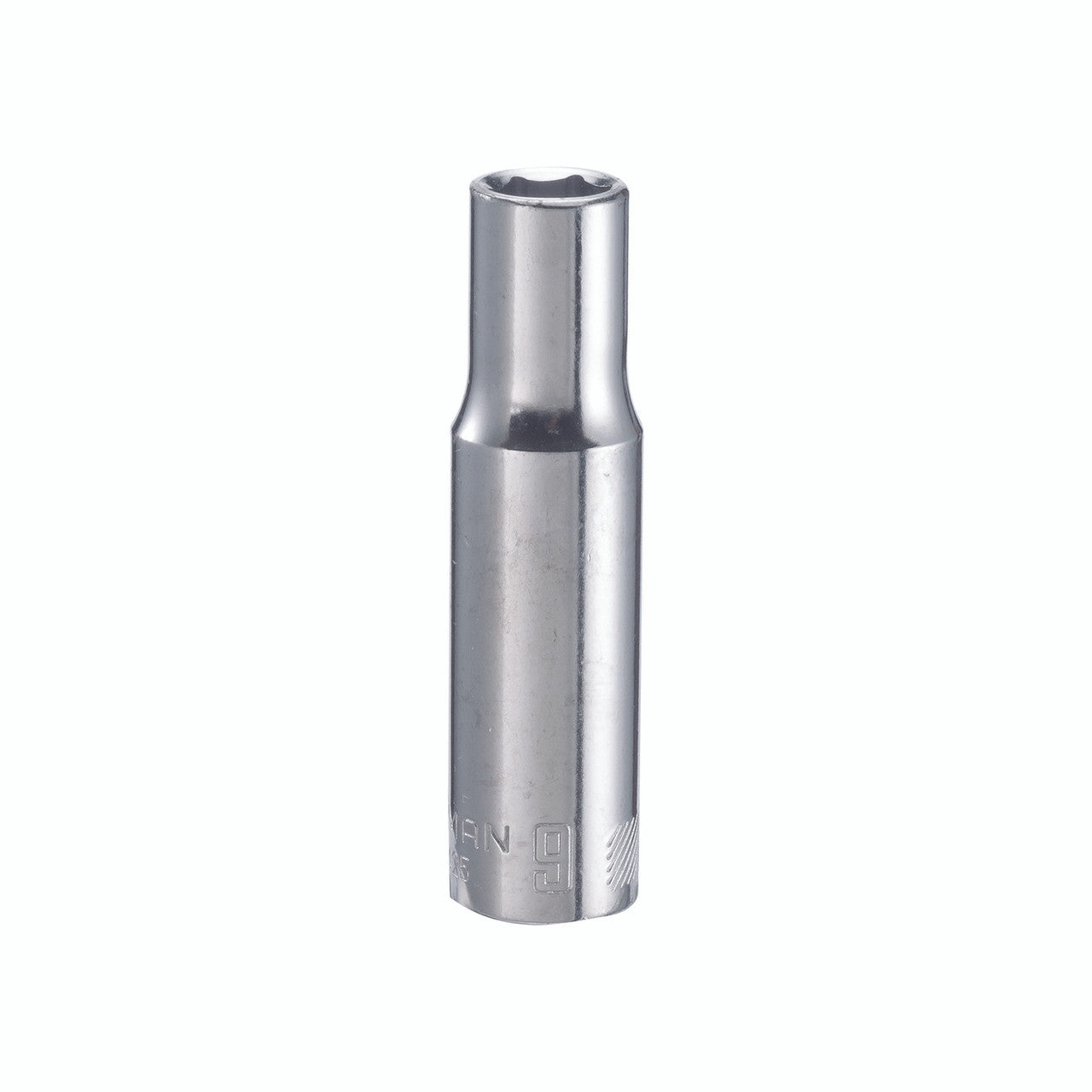 Brand Name: cm | Drive Size: 3/8 in. drive | Material: Alloy Steel | Metric or SAE: Metric | Number in Package: 1 pc. | Number of Points: 6 Point | Packaging Type: Carded | Socket Size: 9 mm | Style: Deep | Impact Rated: No Laser-etched size marking makes it easy to locate the right socket for the job. Great for working in low-lit or greasy environments. Permanent marking resists chipping, fading and corroding. Headlock grip gives more contact on the flats of the fastener for more turning force. | 9 mm socket | 3/8 in. drive size | Deep socket depth | Easy-to-read marking text size | Nickel plated finish | Metric or SAE socket size | Metric or SAE screw bit size