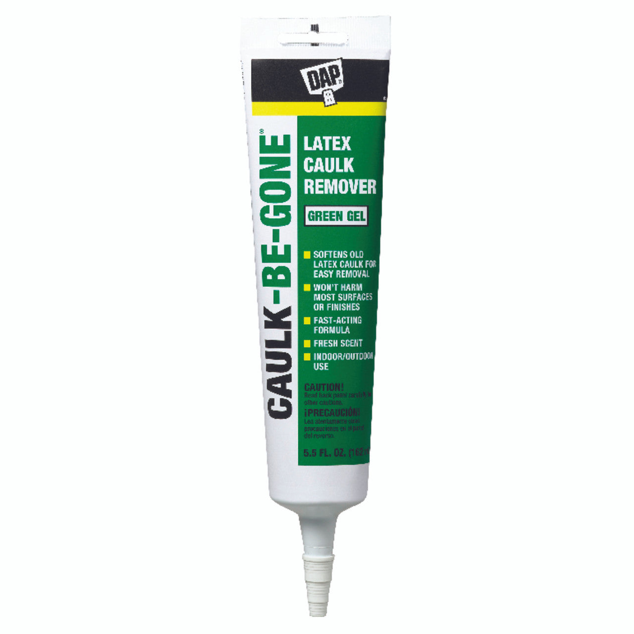 Brand Name: DAP | Concentrated: No | Container Size: 5.5 oz. | Flammable: No | General Package Type: Squeeze Tube | Odorless: Yes | Packaging Type: Tube | Product Form: Gel | Sub Brand: Caulk-Be-Gone | Indoor or Outdoor: Indoor and Outdoor Caulk Be Gone is a specially formulated gel that softens many types of caulks and sealants for easy removal. Fast-acting formula works in as little as two hours. Has a fresh scent and will not harm most surfaces. Interior/exterior use. | Specially formulated gel softens many types of caulks and sealants for easy removal | Fast-acting formula, works in as little as two hours | Fresh scent | Will not harm most surfaces | Interior or exterior | Green gel color