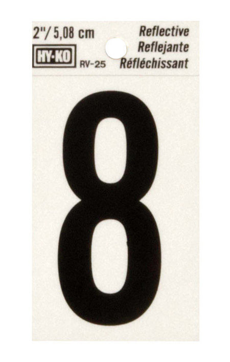 Hy-Ko 2 in. Reflective Black Vinyl Self-Adhesive Number 8 1 pc.