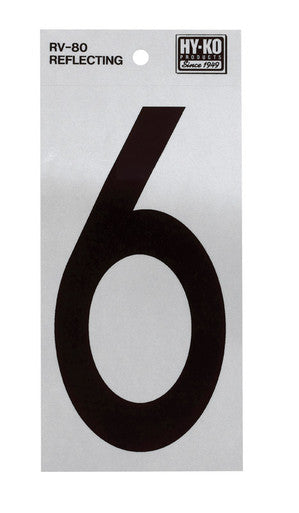 Hy-Ko 6 in. Reflective Black Vinyl Self-Adhesive Number 6 1 pc.