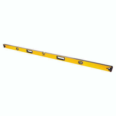 Accuracy: 0.0005 in. | Brand Name: Stanley | Color: Yellow | Height: 1.4 in. | Length: 72 in. | Level Type: Box Beam | Material: Aluminum | Number in Package: 1 pc. | Number of Vials: 3 vial | Sub Brand: FATMAX | Weight: 4 lb. Since 1843 Stanley tools have been on the belt and in the hands of professional contractors and accomplished homeowners. Synonymous with quality, reliability, innovation and value, Stanley is the first name in tape measures and trusted worldwide for accuracy and dependability. | Non-marring side bumpers helps prevent damage to finished surfaces | Maxedge bridged center vial for continuous marking surface and durability | Single-piece, aluminum box-beam structure for durability and accuracy | Large ergonomic rubber over-molded hand grip | Shock-absorbing end caps hold up to heavy use | Non-marring side bumpers helps prevent damage to finished surfaces