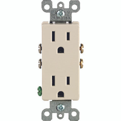 Brand Name: Leviton | CSA LIsted: Yes | Color: Light Almond | Commercial or Residential: Residential | Depth: 0.98 in. | Gauge: 14 Ga. | Grounded: Yes | Height: 4.20 in. | Material: Thermoplastic | Maximum Amperage: 15 amps | Mounting Type: In-Wall | Nema Type: 5-15R | Number in Package: 1 pk | Number of Poles: 2 | Number of Wires: 3 | Packaging Type: Boxed | Sub Brand: Decora | UL Listed: Yes | Volts: 125 volt | Width: 1.31 in. | Indoor or Outdoor: Indoor | Outlet Configuration: Duplex Levitonà ¢Ã¢â€š ¬Ã¢â€ž ¢s comprehensive Residential Grade Receptacles portfolio includes devices rated for all residential applications in a variety of standard configurations. They are produced in an array of colors in both Decora and traditional styles. All duplex receptacles are designed with thermoplastic construction and feature a shallow build for maximum wiring room. Each duplex is also equipped with break-off plaster ears and tabs to allow for easy alignment and two-circuit conversion. | Quick wire and side wiring | Replaces traditional outlets | Use with decora wall plate