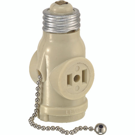 Leviton Plastic Medium Base Lampholder with Outlet and Pull Chain 1 pack