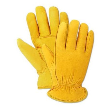 The Magid TB1642ET Thinsulate-Lined Deerskin Drivers Glove features a gunn pattern and keystone style thumb. | Gold | Shirred elastic | Gunn pattern | Keystone Thumb | Thinsulate-lined