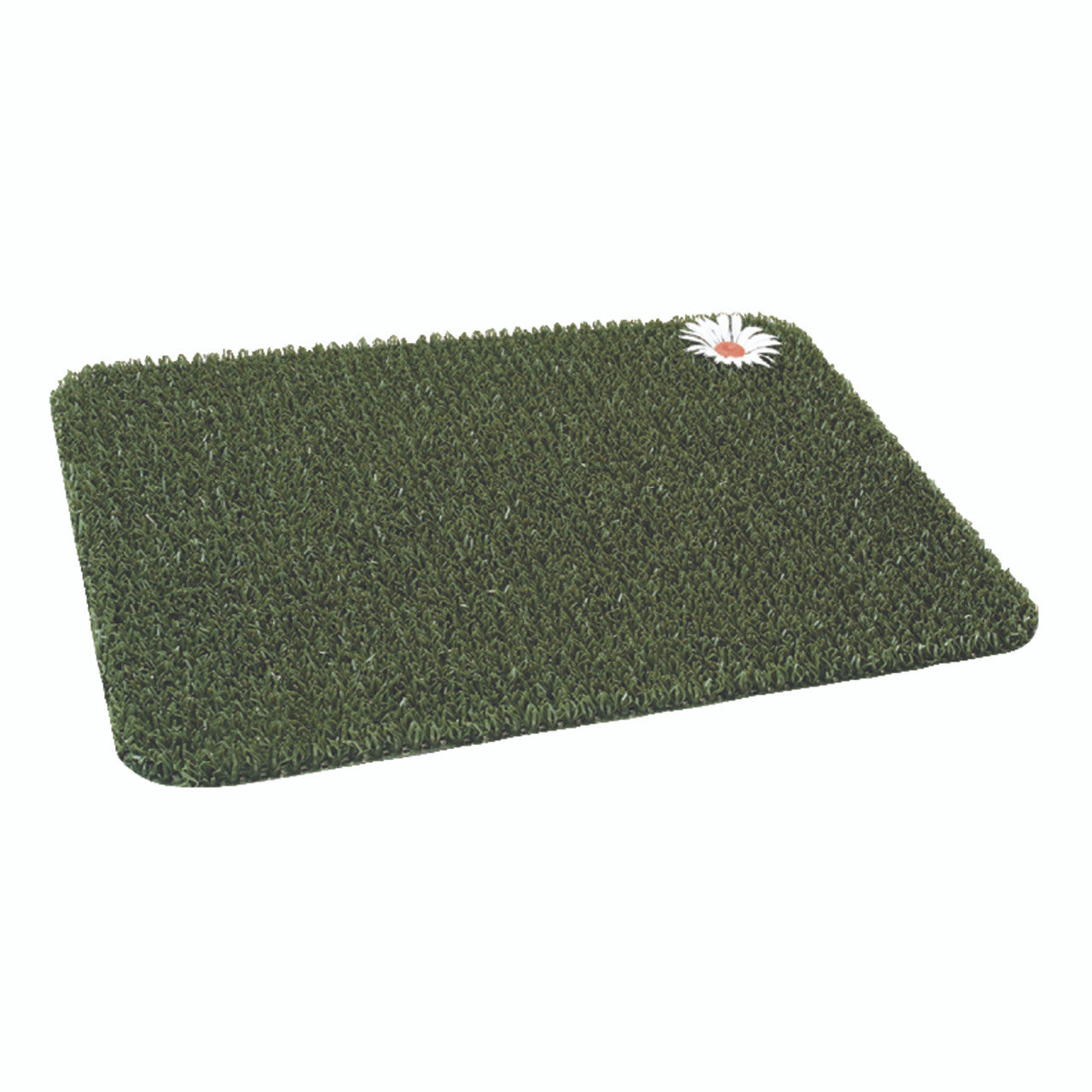Brand Name: GrassWorx | Color: Green | Commercial or Residential: Residential | Length: 24 in. | Material: Polyethylene | Nonslip: Yes | Washable: Yes | Waterproof: Yes | Width: 18 in. Clean machine door mat has a genuine Astroturf patented process that creates a grid pattern of thousands of small blades that scrape the shoes or boots clean. Rugged construction that will not fade, shed or mildew and has a skid-proof back. Easy-to-clean, just shake or hose off. | Scrapes, holds and hides up to a pound of dirt per week | Rugged construction that won't fade, shed or mildew | Easy-to-clean, just shake or hose off | The genuine Astroturf patented process creates a grid pattern of thousands of small blades that scrape the shoes or boots clean