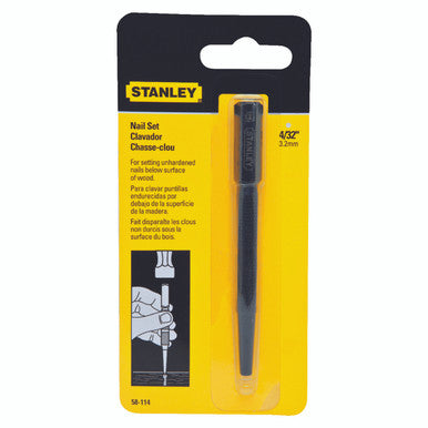 Brand Name: Stanley | Color: BLACK | Length: 4 in. | Material: STEEL | Size: 4/32 in. Since 1843 Stanley tools have been on the belt and in the hands of professional contractors and accomplished homeowners. Synonymous with quality, reliability, innovation and value, Stanley is the first name in tape measures and trusted worldwide for accuracy and dependability. | Ideal for setting nails into materials | Long length for setting nails in hard-to-reach areas | Fully hardened, precision-milled steel for long life | Long, beveled tip for easy nail head alignment | Square head prevents rolling when set down