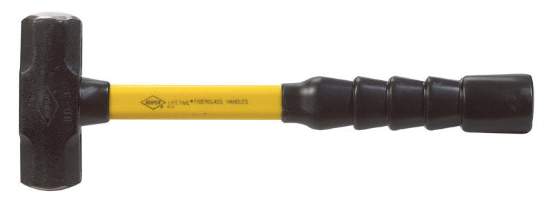 Brand Name: Nupla | Face Diameter: 1.5 in. | Handle Length: 14 in. | Handle Material: Fiberglass Handle | Head Weight: 3 lb. | Head material: Steel The 3 lbs. Double-face Sledge Hammer has a drop forged, heat treated and tempered carbon steel sledge head with dual machined striking faces and chamfers. The 14 inch hammer handle is solid pultruded fiberglass made with thousands of fiberglass strands and a unique resin making it super strong and resistant to weather, chemicals and insects (unlike most wooden handles). Ergonomic non-slip grip reduces arm strain due to less squeeze and gripping effort required. The Sledge Hammer can be used for any heavy duty application requiring use of force. | Double-face Sledge Hammer has a drop forged, heat treated and tempered carbon steel sledge head | Non slip grip assures safe operation in slippery conditions | All Nupla tools feature lifetime Nuplaglas handles for strength, safety and durability | Made in the USA