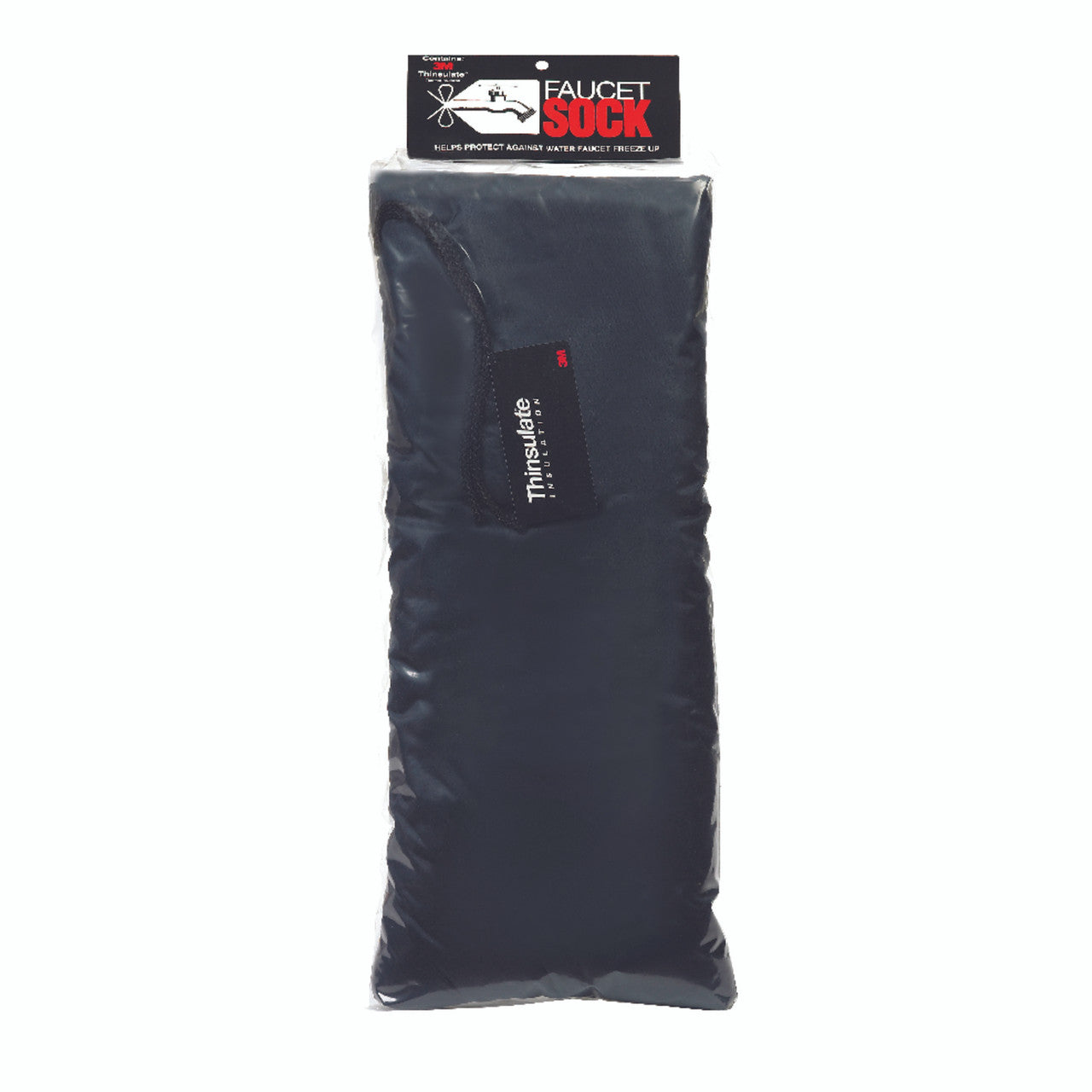 Brand Name: Faucet Sock | Length: 20 in. | Material: Thinsulate Waterproof Nylon | Maximum Pipe Size: 1 in. | Self Sealing: No Protects outdoor faucets from freezing. Helps prevent water freeze-up and costly repairs. Slip over faucet and secure with attached string tie. Size small is for wall faucets. A double layer of 3M Thinsulate covered in a waterproof nylon guards against wet and cold. | Protects outdoor faucets from freezing | Helps prevent water freeze-up and costly repairs | A double layer of 3 meter Thin slate covered in a waterproof nylon guards against wet and cold | Slip over faucet and secure with attached string tie | Large size