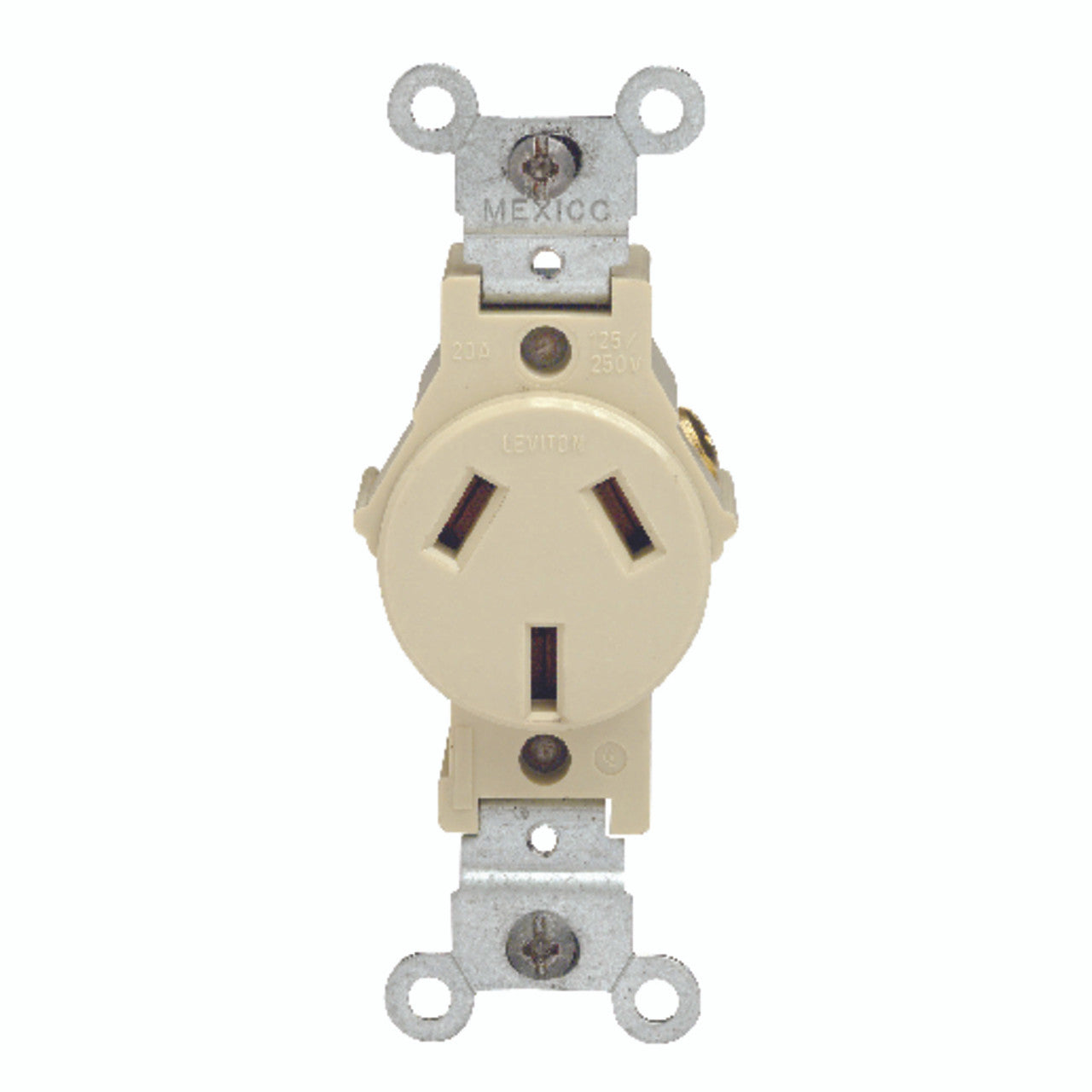 Brand Name: Leviton | CSA LIsted: Yes | Color: Ivory | Commercial or Residential: Commerical and Residential | Depth: 0.82 in. | Gauge: 14 - 10 Ga. | Grounded: Yes | Height: 4.06 in. | Material: Nylon | Maximum Amperage: 20 amps | Nema Type: 10-20R | Number in Package: 1 pk | Number of Poles: 2 | Number of Wires: 3 | Packaging Type: Boxed | Sub Brand: Blak & White | UL Listed: Yes | Volts: 125 volt | Width: 1.38 in. | Indoor or Outdoor: Indoor Levitonà ¢Ã¢â€š ¬Ã¢â€ž ¢s line of Heavy-Duty Specification Grade receptacles are designed and manufactured to withstand the most demanding environments. Available in a wide variety of configurations, including isolated ground, tamper-resistant, etc., these Commercial Grade devices are the electrical contractor's choice for use in hotels, schools, hospitals and commercial office buildings. | 20A-125/250V | Non-Grounding | Commercial Grade