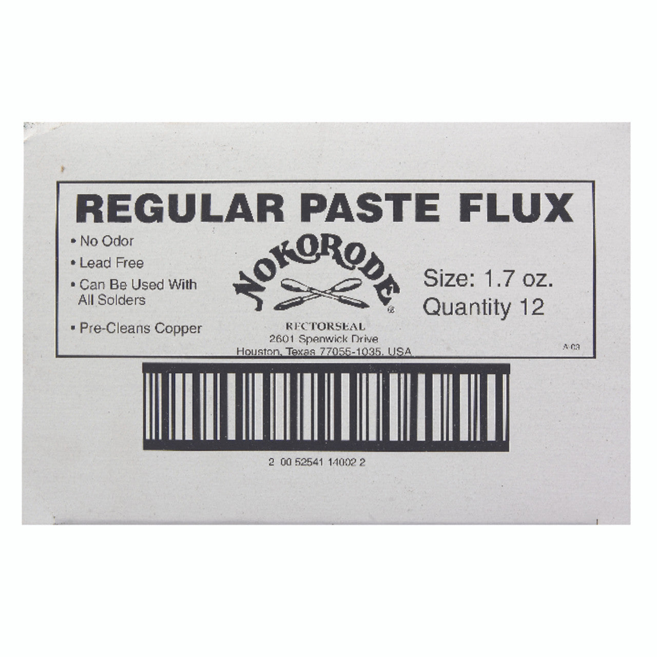 Brand Name: rectorseal | Container Size: 1.7-oz. | Number in Package: 1-pc. | Sub Brand: nokorode | Suitable for Electrical Use: no | Tinning: yes | Usage: effective-on-all-metals-except-aluminum,-magnesium | Lead-Free: yes | Water-Soluble: no Nokorode soldering flux has been the brand preferred by professionals for over 100 years. They use it to clean and flux copper pipe in one operation, saving time and money. The creamy formula flows smoothly into even the smallest cavity. Joints using Nokorode are strong, leak free, stay active in excess of 800 degree and do not liquefy in hot temperatures or become brittle in severe cold. Nokorode flux is 100 percent lead free and odorless. | Prepares joint for strong weld | Lead free | Odor less | Clean and flux in one step | Safe for potable water