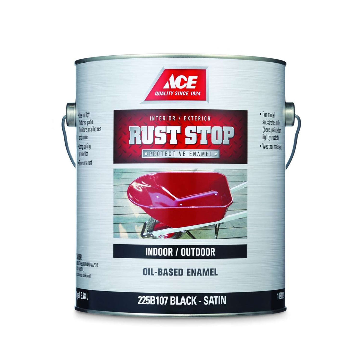 Ace Rust Stop is an alkyd enamel for interior or exterior use on a variety of metal surfaces (bare, painted, or lightly rusted).