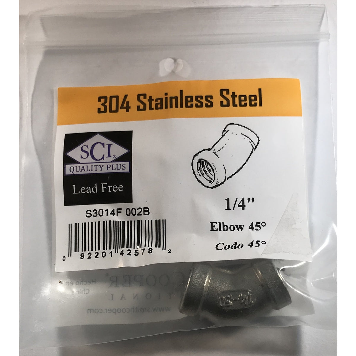 Smith-Cooper 1/4 in. FPT x 1/4 in. Dia. FPT Stainless Steel 45 Degree Elbow