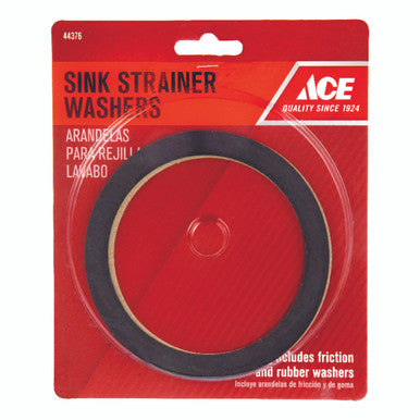 What's Included: Friction and rubber washers | Brand Name: ACE | Color: BLACK | Exterior Diameter: 3-1/2 in. | Interior Diameter: 3-1/2 in. | Material: Rubber | Number in Package: 1 pk | Packaging Type: Carded Ace 3-1/2 in. Dia. Rubber Basket Strainer Washer 1 pc. | What's Included: Friction and rubber washers | Fits most sink strainers | Basket Strainer Washer | 3 1/2" Diameter