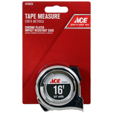 Belt Clip: Yes | Brand Name: ACE | Case Material: Metal | Color: Chrome | Length: 16 ft. | Lockable: Yes | Magnetic: No | Number in Package: 1 pk | Packaging Type: Carded | Width: 0.75 in. 3/4 x 16' CHROME TAPE RULEErgonomically designed ABS case Single side print with matte coating blade | HIGH IMPACT ABS HOUSING | NYLON COATING BLADE FOR BETTER ABRASION | CHROME PLATING