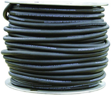 12/3 SJOOW bulk electrical cable. Rated for 20 Amps. Heavy-duty jacket.